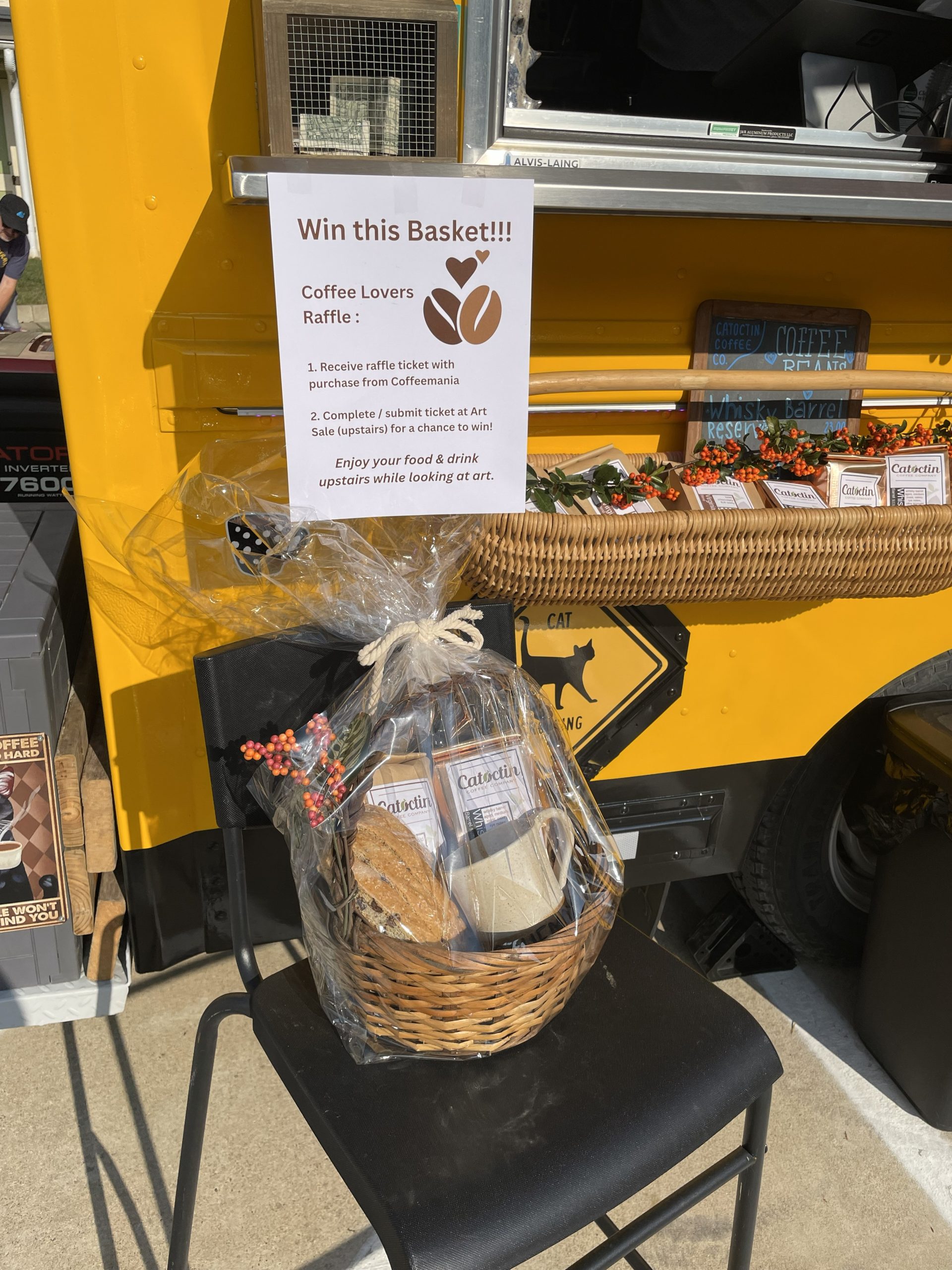 The Coffee Raffle consisted of bags of beans from Catoctin Coffee Company, donated by Coffeemania, biscotti from Knead Bakery in Winchester and a beautiful Bluemont coffee mug donated by Deb Snyder from Maple Cottage Pottery.The Survey Raffle was a beautiful collection of over $500 worth of donated artworks and crafts